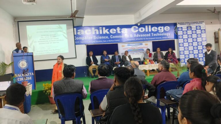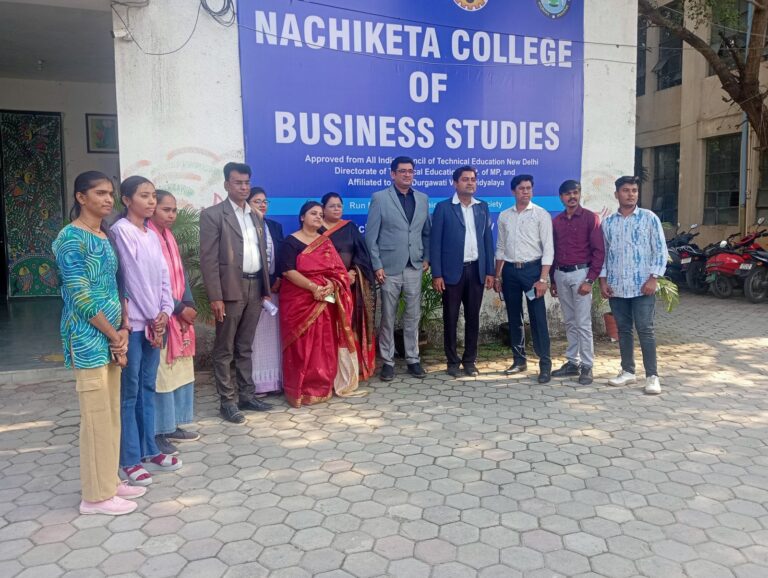 At Nachiketa College of Business Studies, we strive to ensure our students develop the right skills and strategic mindset required to sustain and grow in the scenario of global competition. We are dedicated to preparing our students for the future by cultivating a spirit of innovation and leadership, which empowers them to excel on all professional platforms. Strategically located in the prime area of Vijay Nagar, Jabalpur, the institute is well-connected and offers a modern learning environment. As a dedicated contributor to society, the Institute offers a premier Master of Business Administration (MBA) program. The Institute is approved by AICTE, New Delhi, and affiliated to Rani Durgavati University, Jabalpur (M.P.). Furthermore, our curriculum and teaching methodologies are successfully aligned with the provisions of the New Education Policy - 2020.